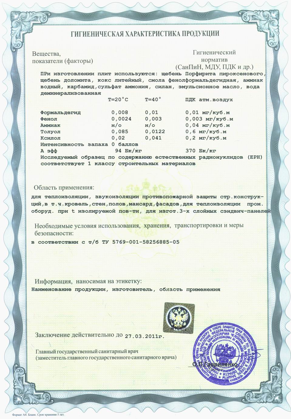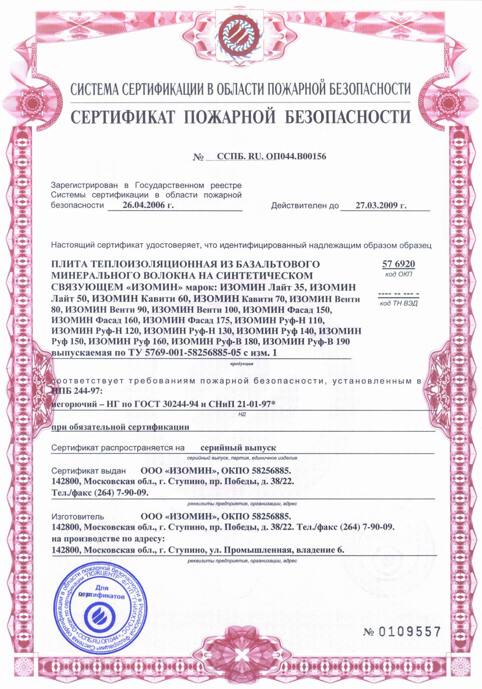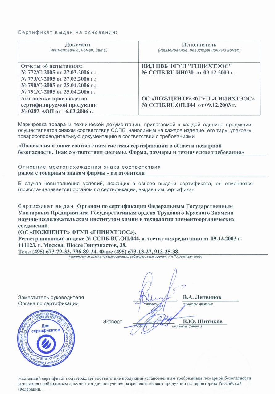 • Группа горючести: НГ (негорючий)